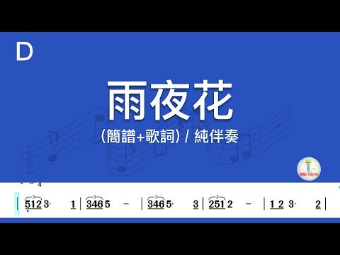 (D調)雨夜花 | 純伴奏(簡譜+歌詞)動態歌譜